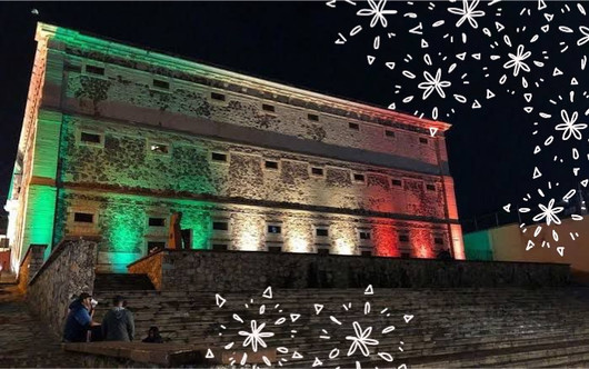 Fotos disponibles en https://mexicorutamagica.mx/2022/03/07/alhondiga-granaditas-guanajuato-precio-pipila-historia/, IG: acosta.photography, s/f, Perspectiva de día e iluminación noctural de la Alhóndiga de Granaditas, intervención por Grecia Gómez Crisóstomo. Recuperada el 28 de septiembre de 2022.